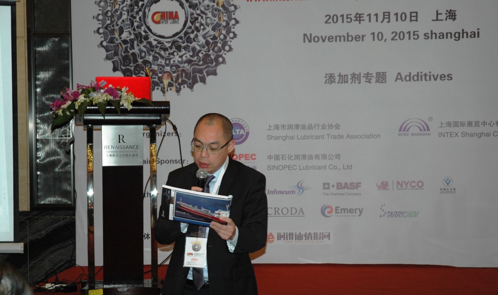 上海宏澤化工有限公司總經理劉剛先生有幸參與了下午分會場-添加劑專題論壇的主持工作,并在會上發(fā)布了宏澤化工的創(chuàng)新產品:低氣味工業(yè)齒輪油復合劑,并與大家交流了該產品研究開發(fā)的進度和各項測試結果。